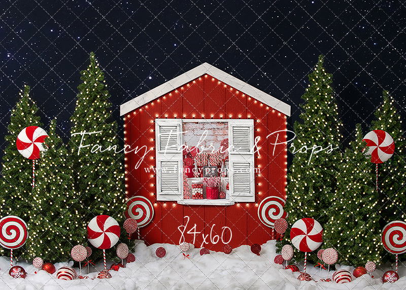 1- 84x60" - Candy Cottage Backdrop - in Fabric or Poly Paper