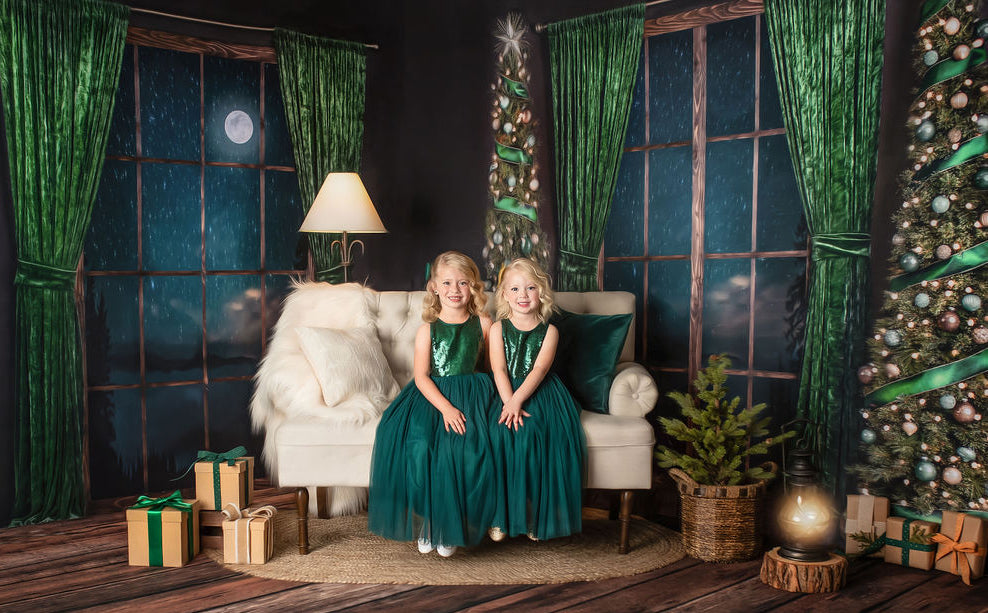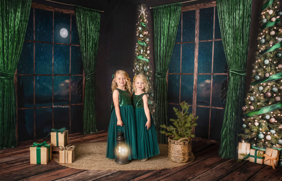 Serene Evergreen Moon Fabric Backdrop