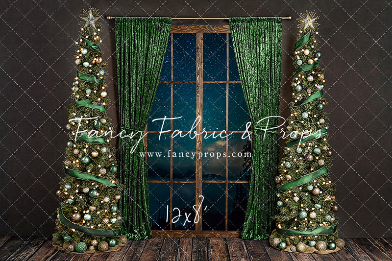 1- 8x7' - Serene Evergreen Moon Fabric Backdrop