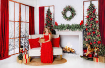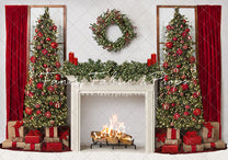 1- 8x7' - Classic Red Mantle Window Fabric Backdrop
