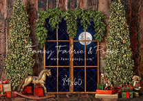 1- 6x6' - Rustic Winter Garland Window Fabric Backdrop