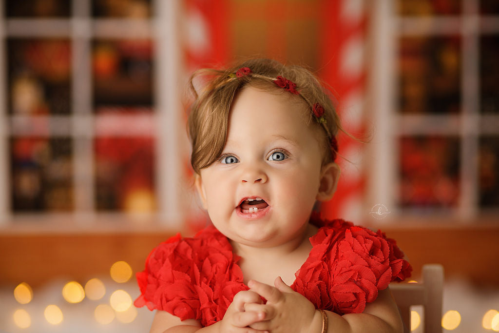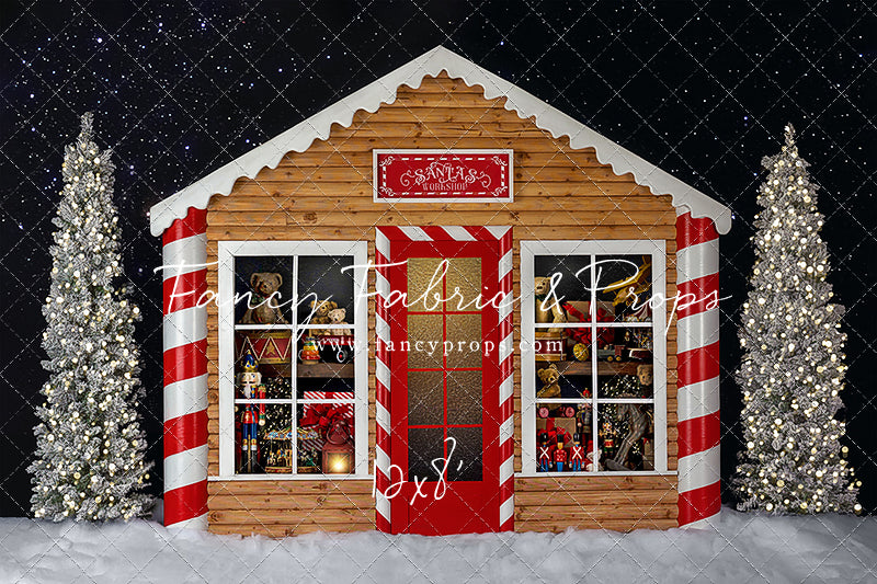 1- 10x7' - Santa's Peppermint Workshop Fabric Backdrop