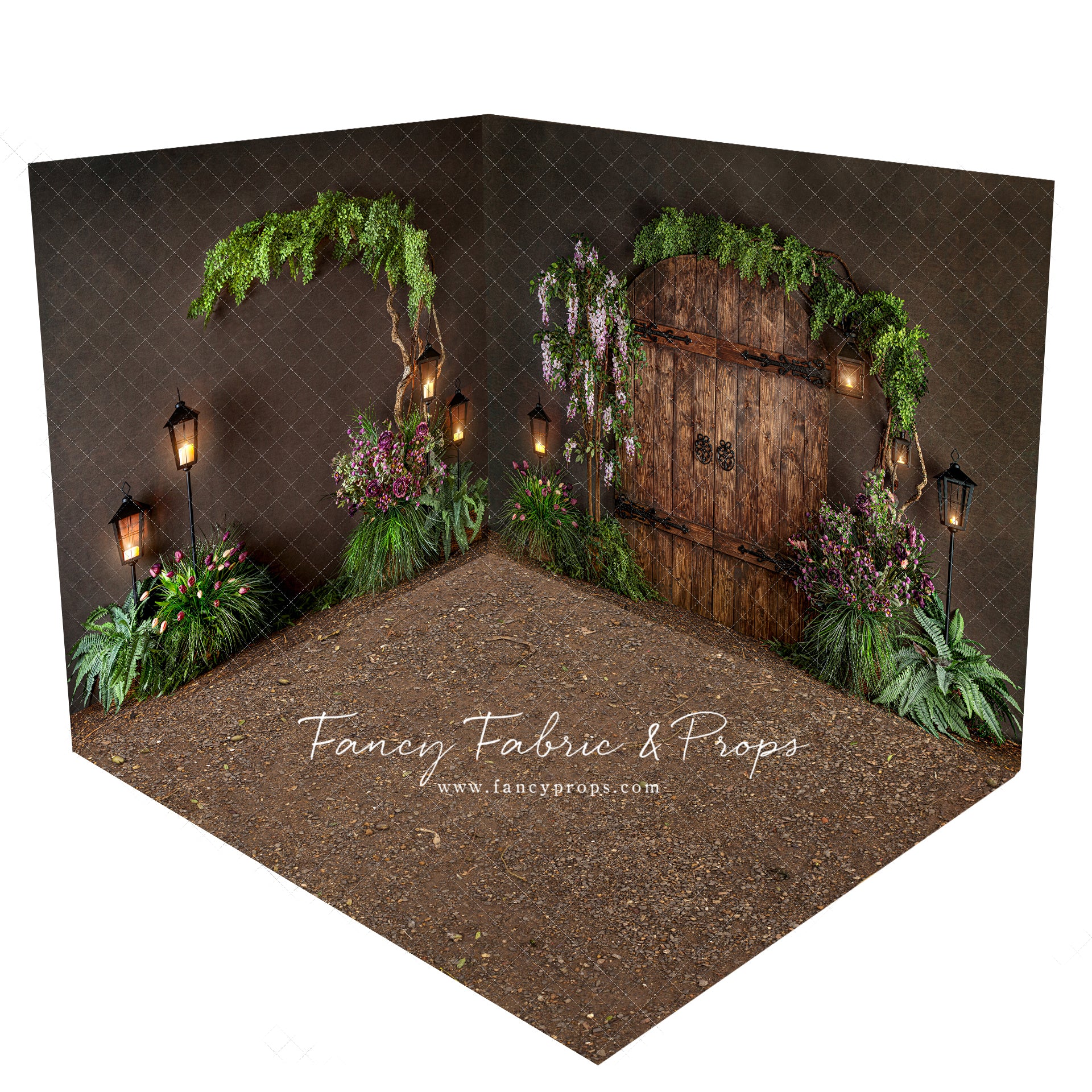 3 piece set meant to be mounted/hung/displayed in the corner of your space for a 3D "room" effect! Fabric backdrops and mat floor will ship and arrive separately.