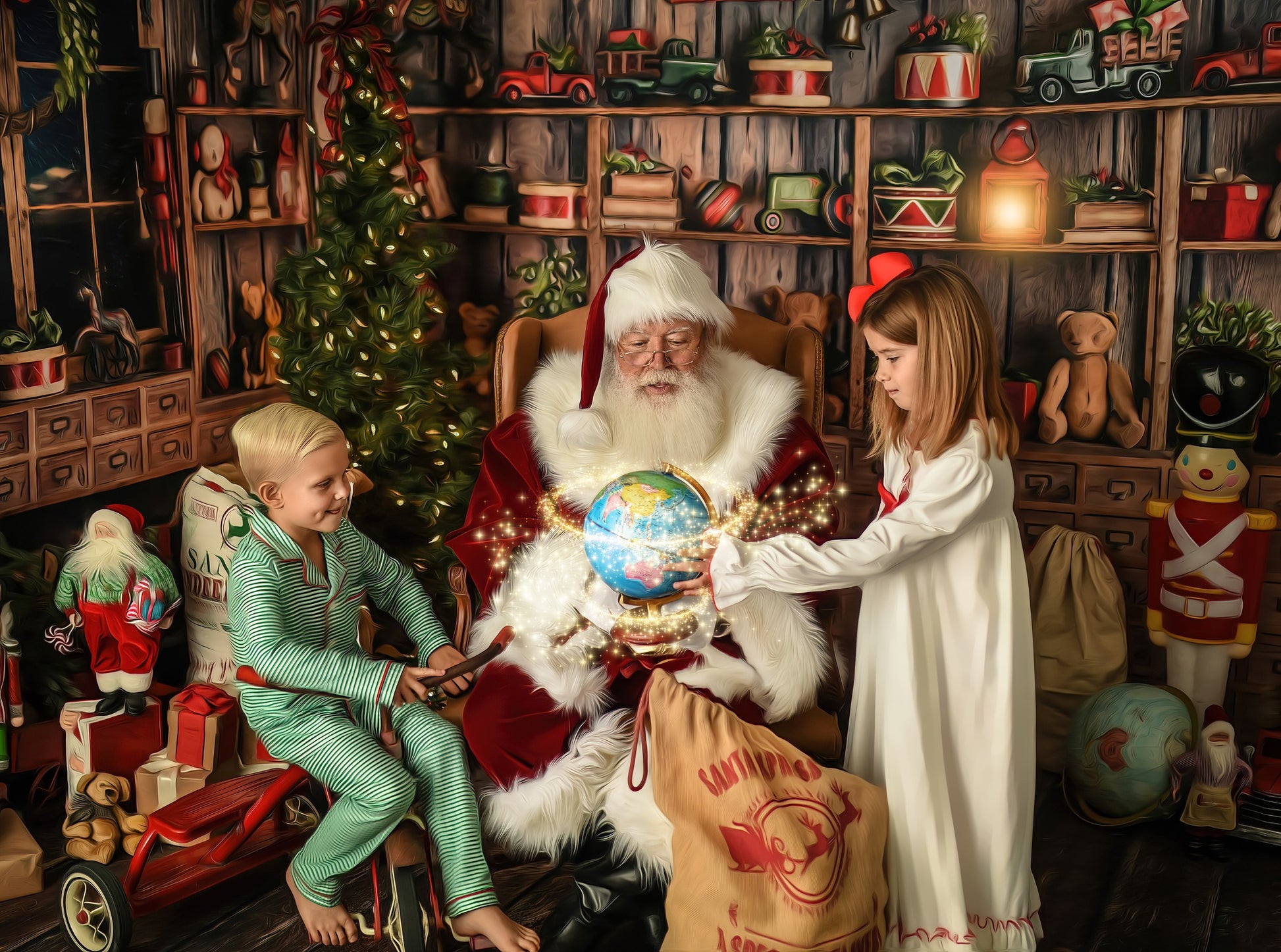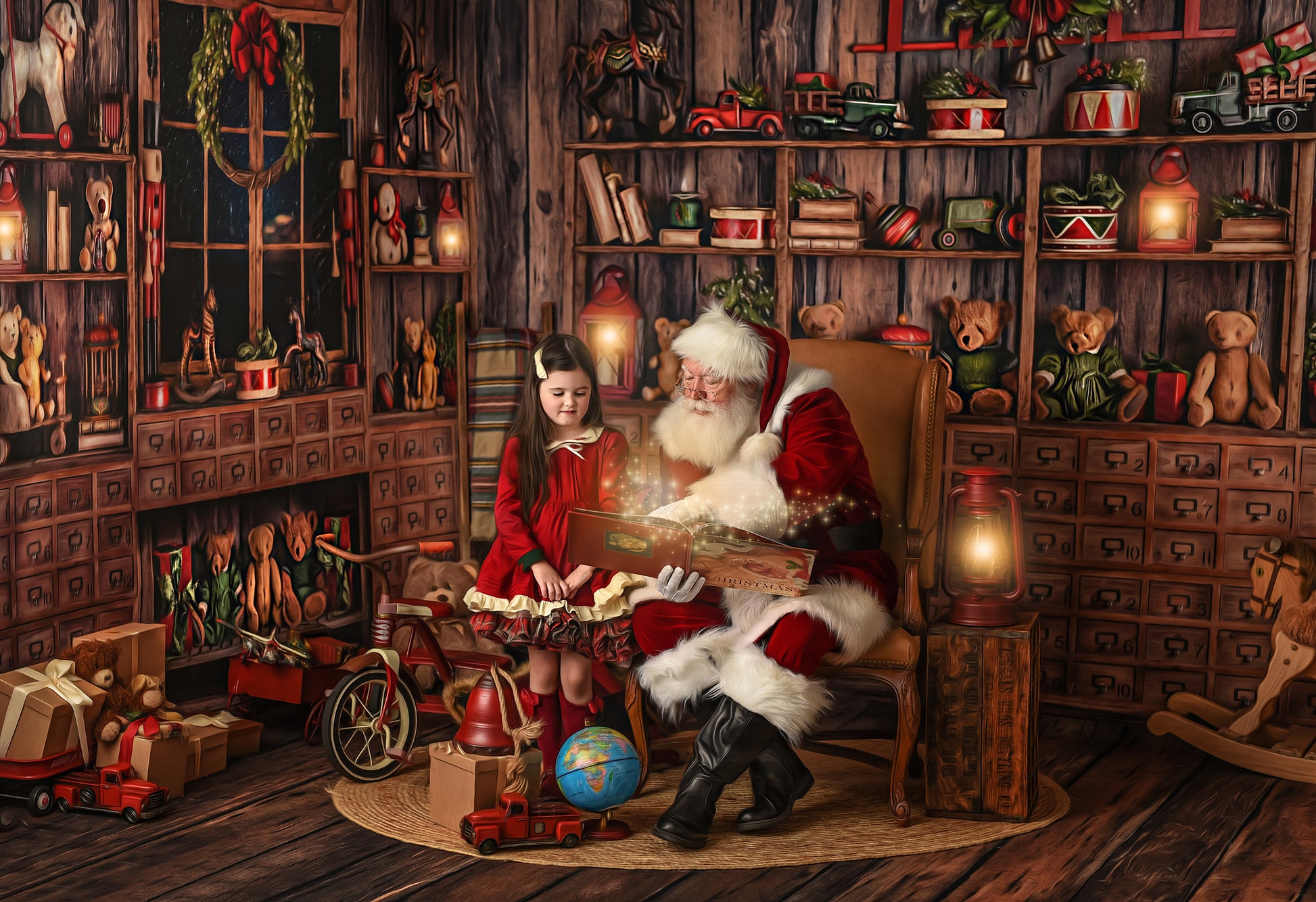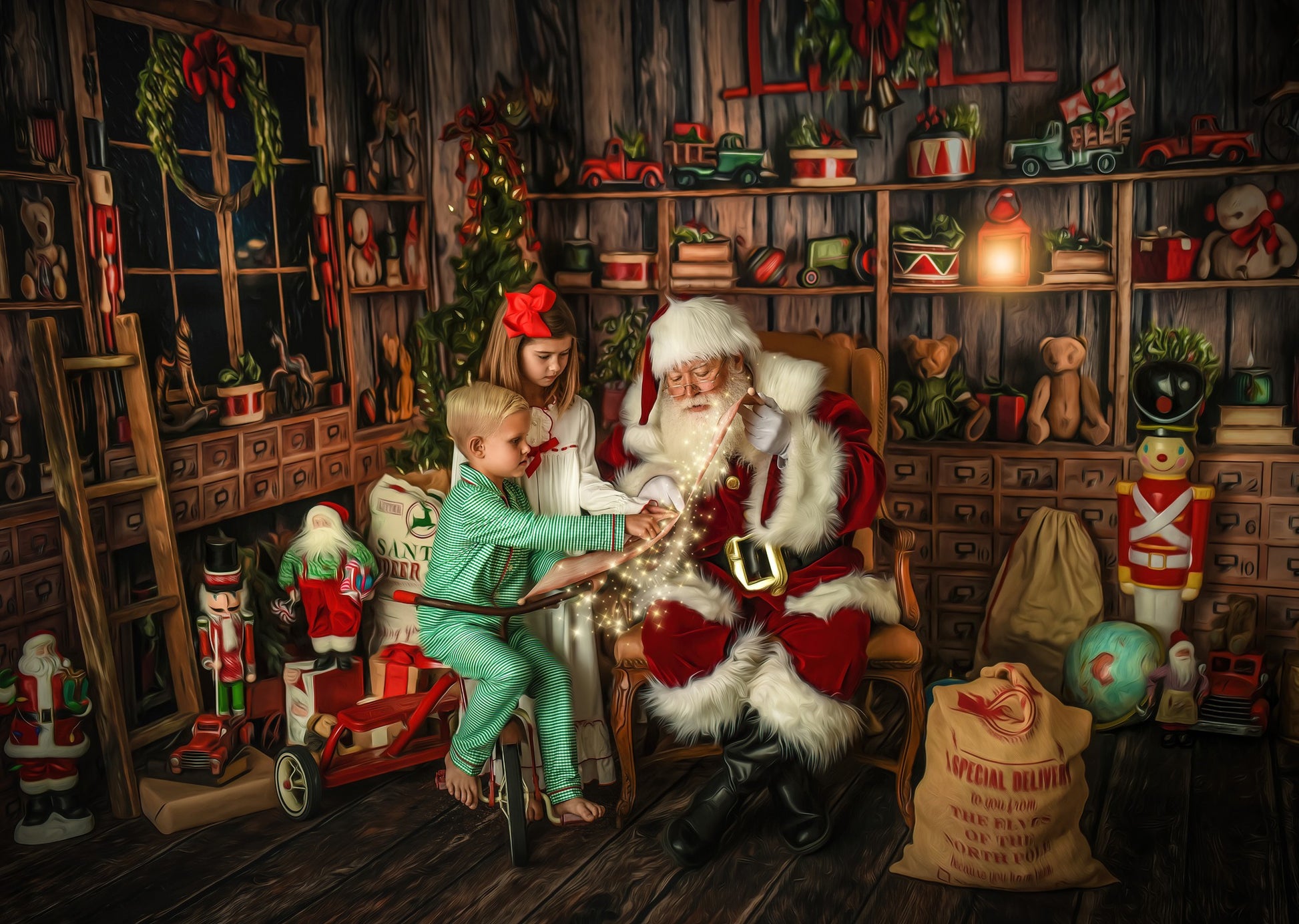 Jolly Saint Nick's Workshop Fabric Backdrop