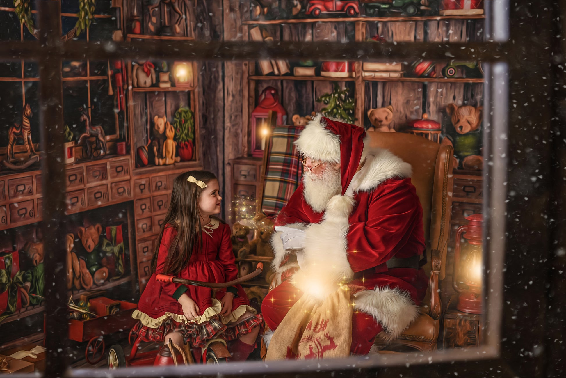 1- 8x8' - Jolly Saint Nick's Workshop Fabric Backdrop
