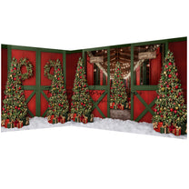 1- 12x8' - Jolly Reindeer Barn - Fabric Backdrop
