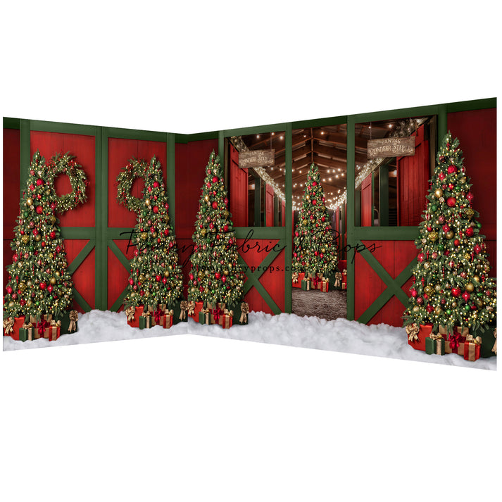 1- 12x8' - Santa's Jolly Reindeer Stable - NO Reindeer -Fabric Backdrop