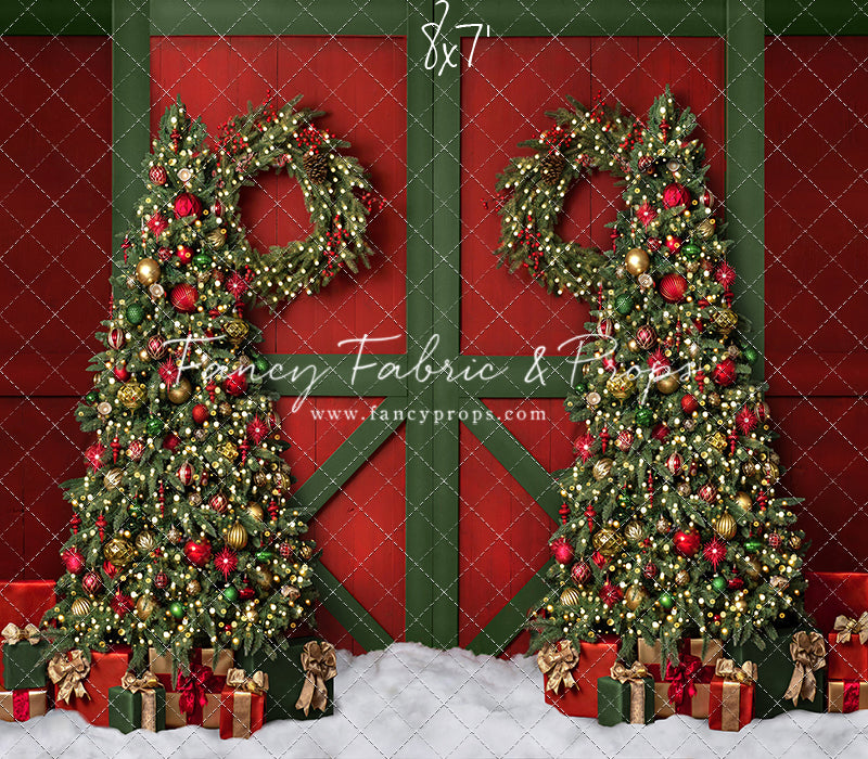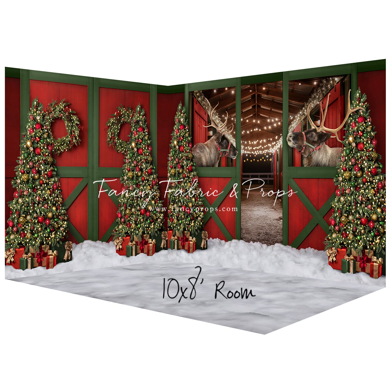 1- 8x8' - Jolly Reindeer Barn - Fabric Backdrop