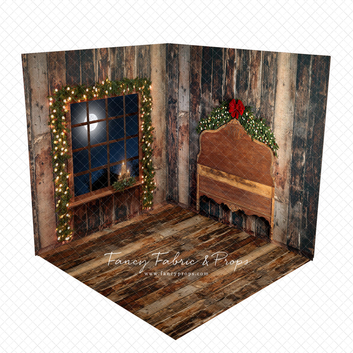 3 piece set meant to be mounted/hung/displayed in the corner of your space for a 3D "room" effect! Fabric backdrops and mat floor will ship and arrive separately.