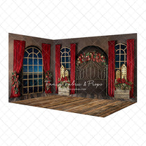 3 piece set meant to be mounted/hung/displayed in the corner of your space for a 3D "room" effect! Fabric backdrops and mat floor will ship and arrive separately.