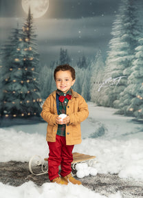 1- 8x8' - Snowy Road With Lights Fabric Backdrop