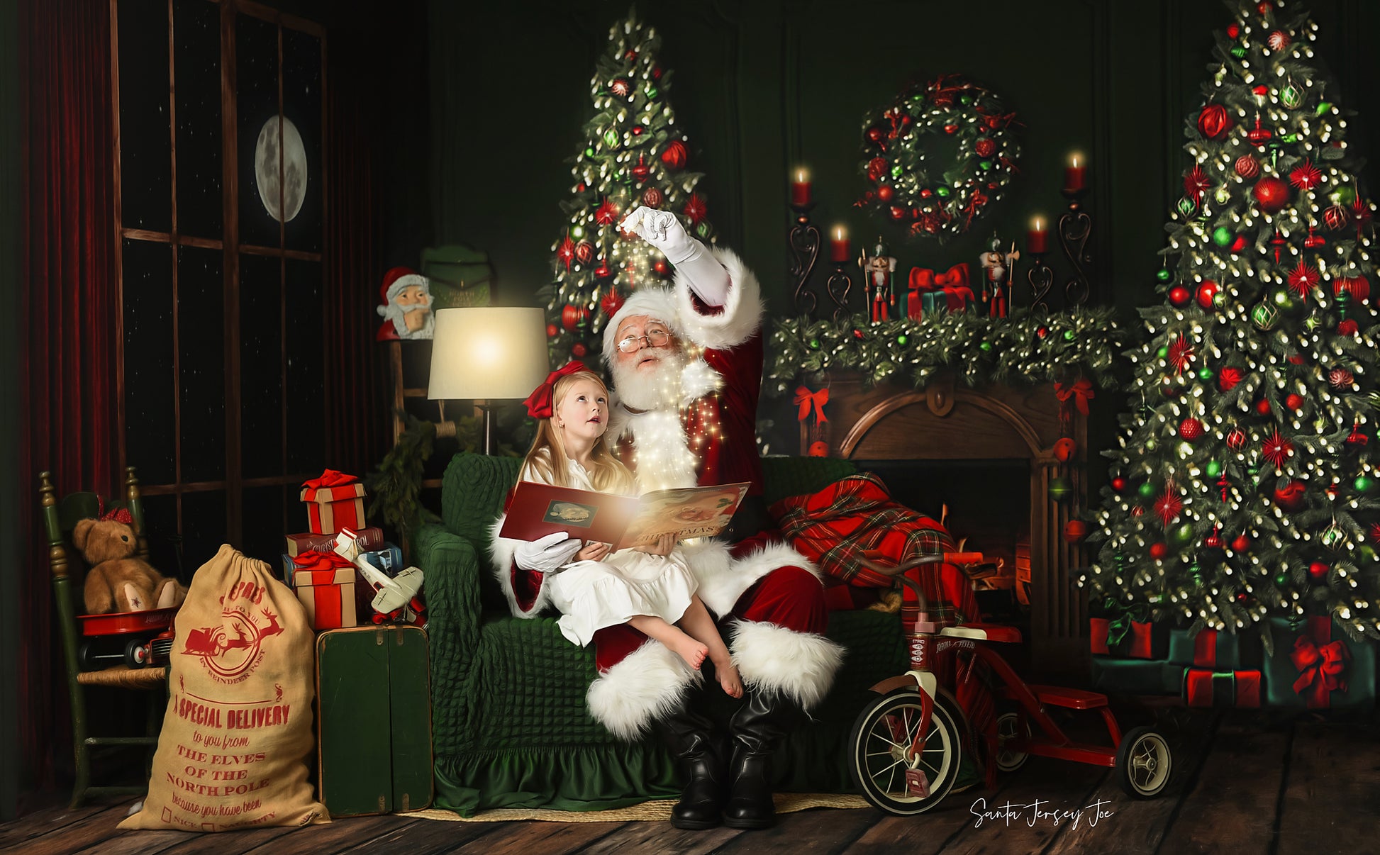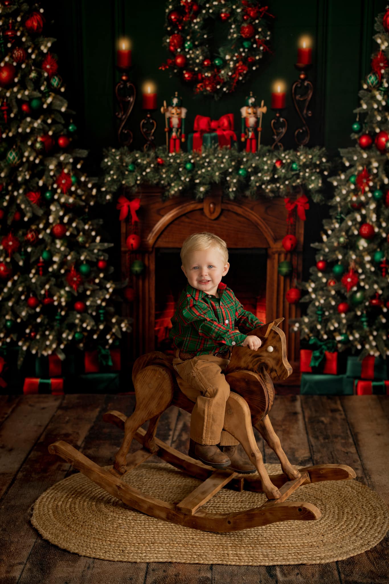 Red & Green Christmas Mantle Fabric Backdrop
