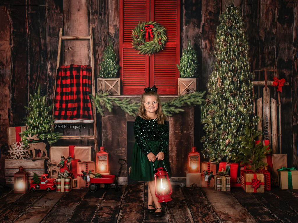 Rustic Plaid Fireplace Fabric Backdrop