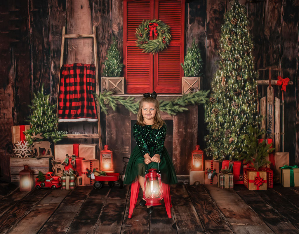 1- 10x8' - Rustic Plaid Fireplace Fabric Backdrop