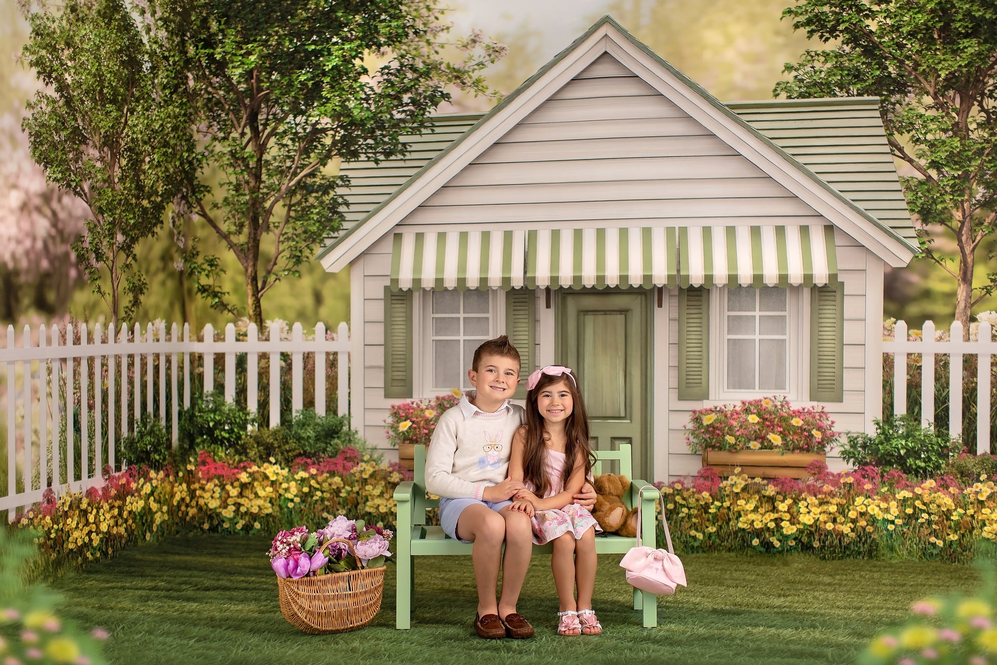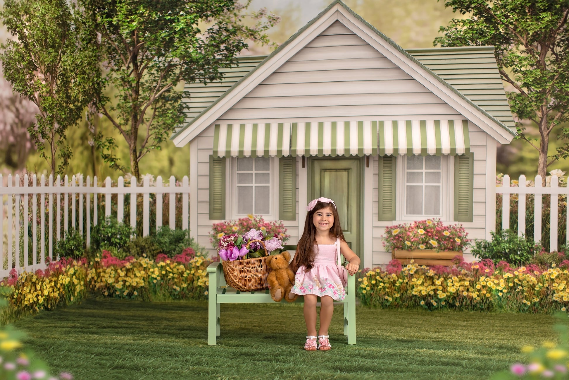1- 12x8' - 'Sage Blossom Cottage' Fabric Backdrop