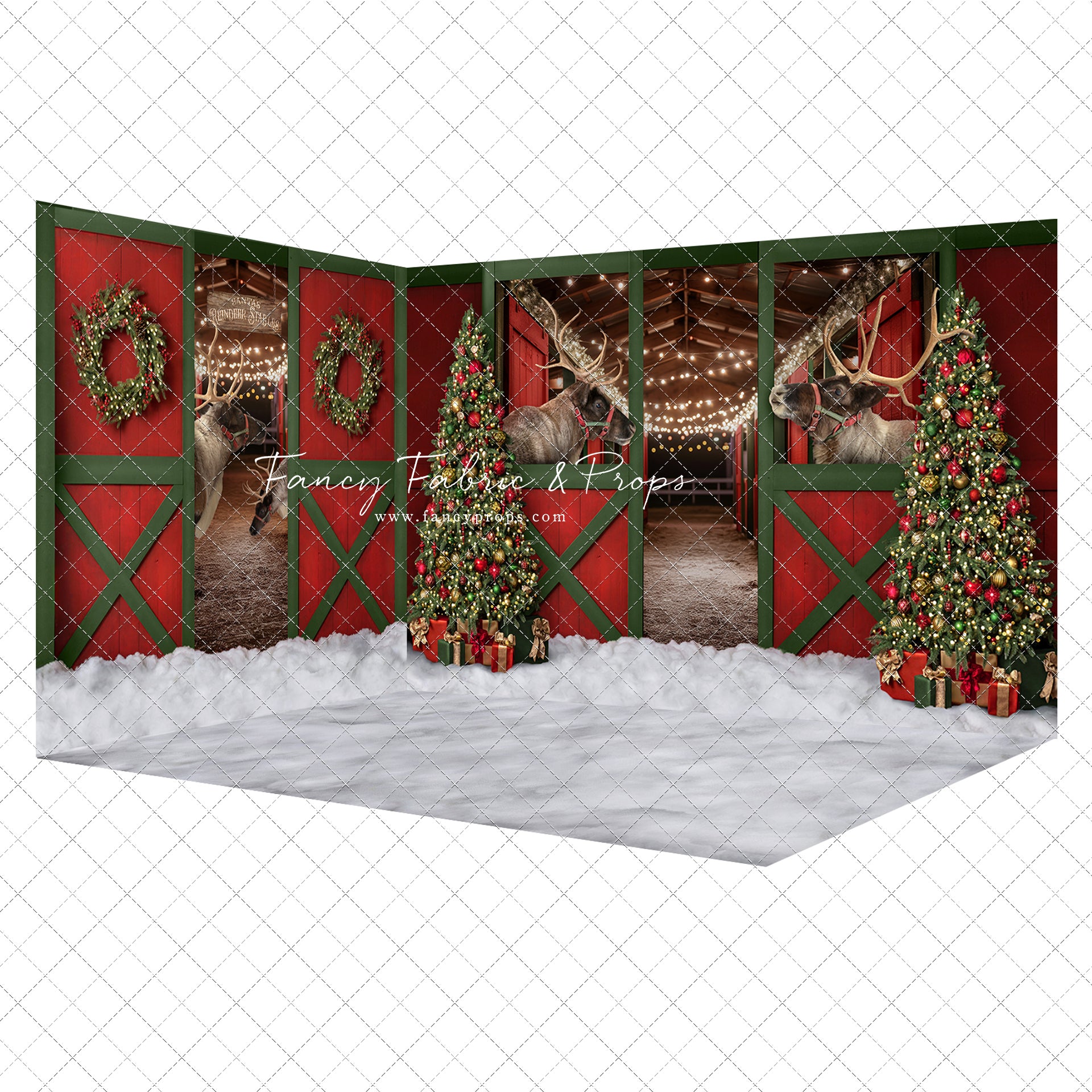 1- 12x8' - Santa's Jolly Reindeer Stable Fabric Backdrop