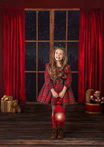 1- 8x7' - Classic Window with Red Drapes Fabric Backdrop