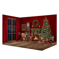 1- 12x8' - Santa's Merry Mantle Fabric Backdrop