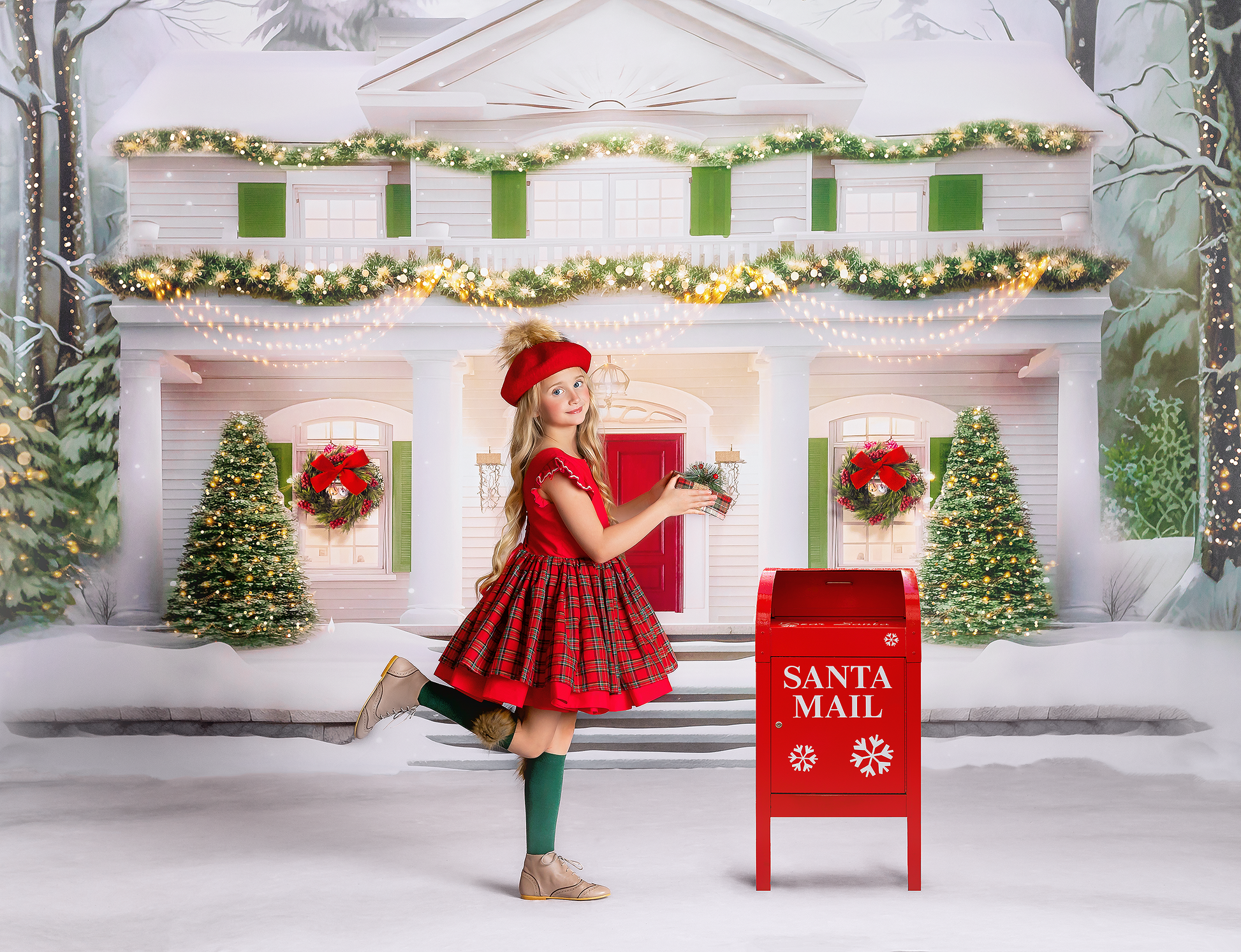 1- 12x8' - Elegant Winter Estate Fabric Backdrop