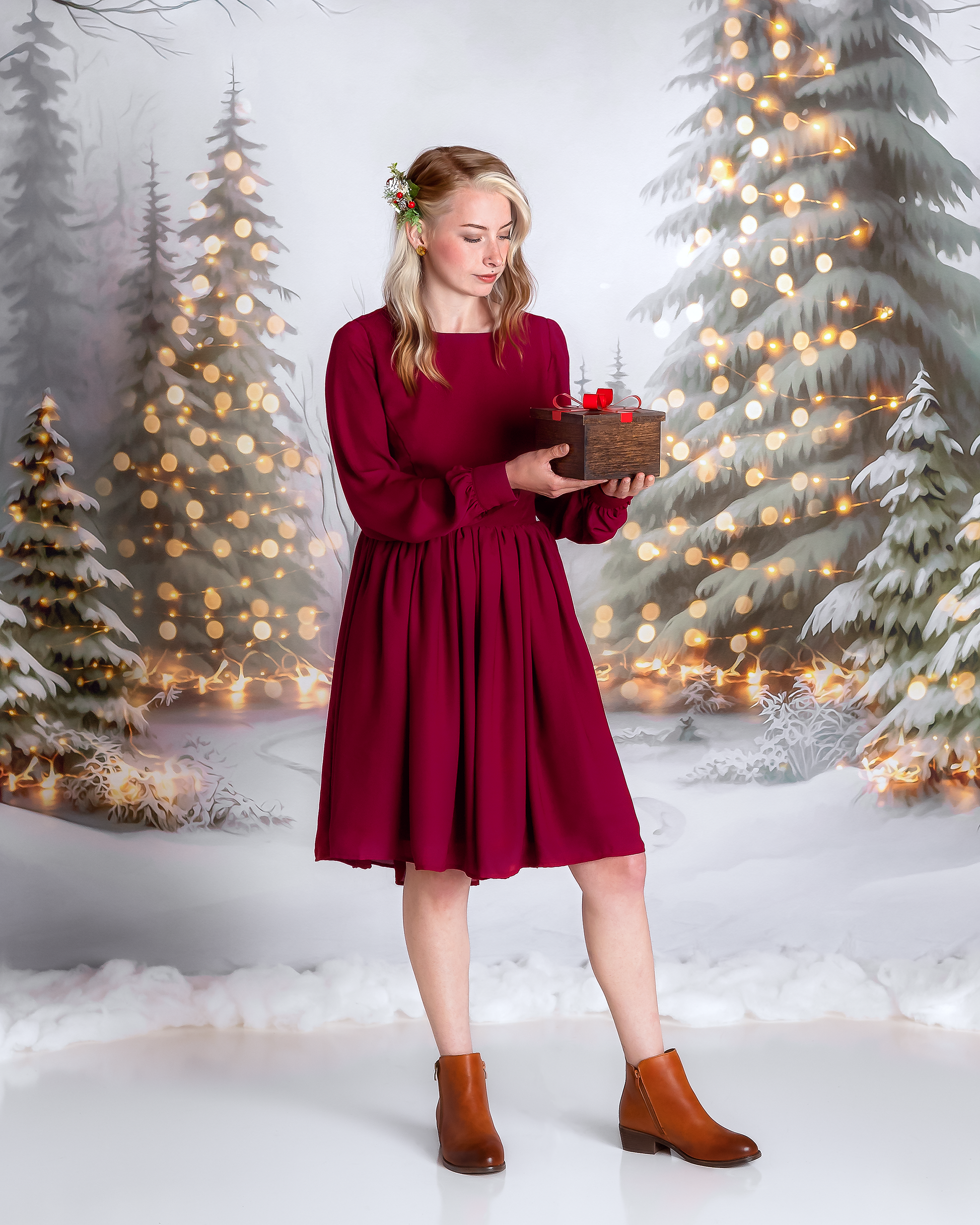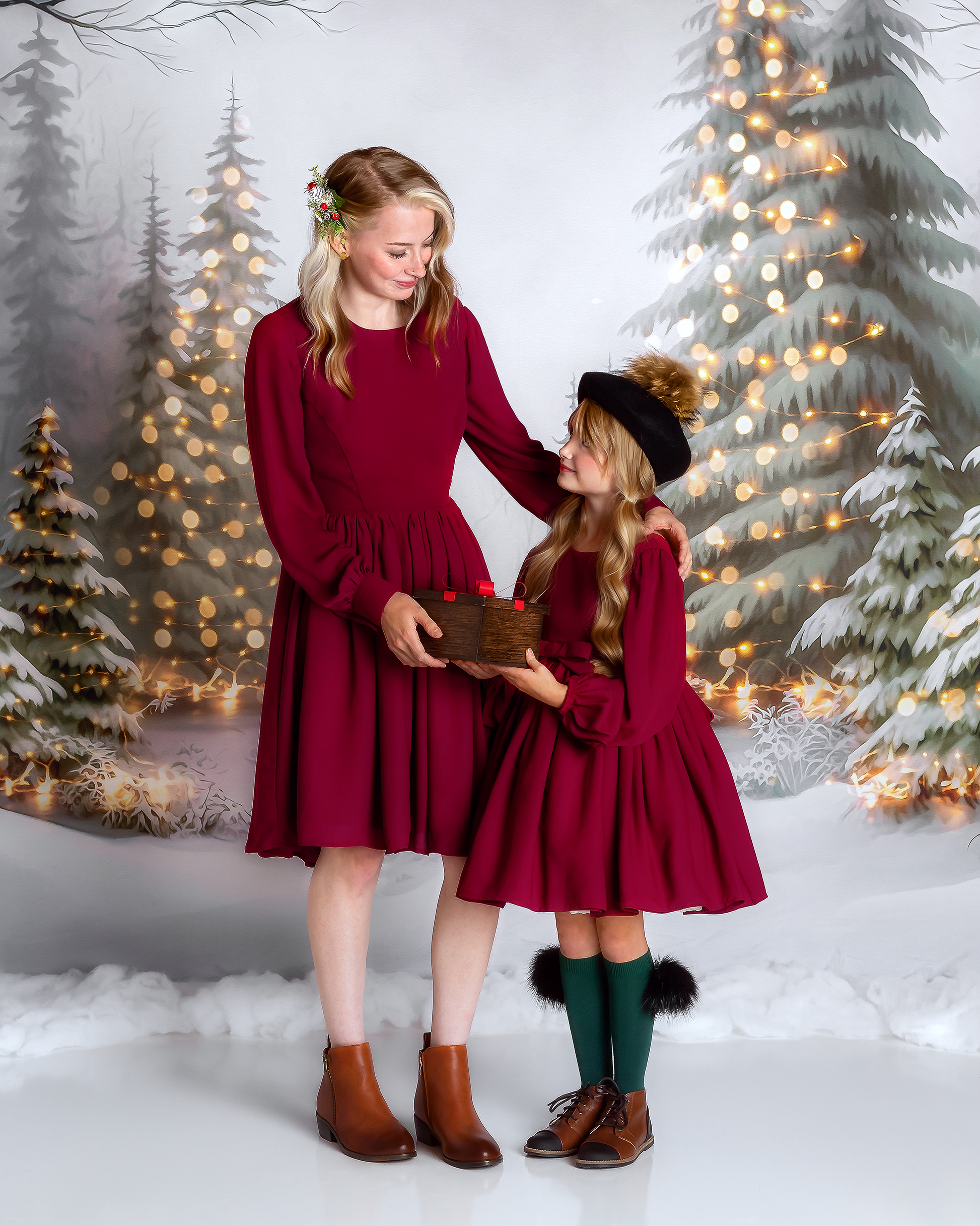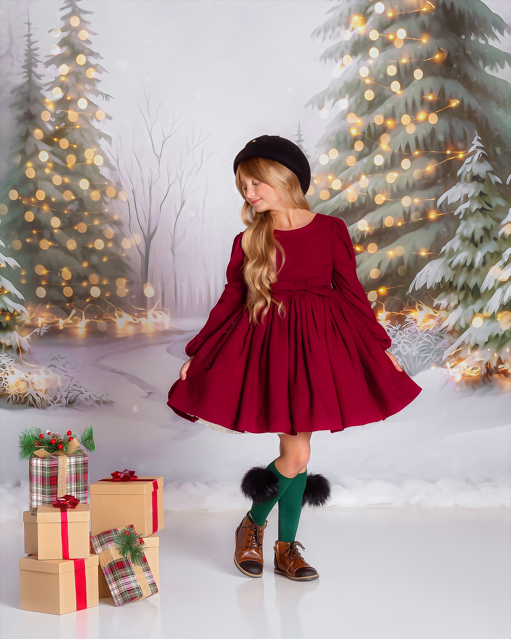1- 8x8' - Snowy Trail of Lights- No Deer - Fabric Backdrop