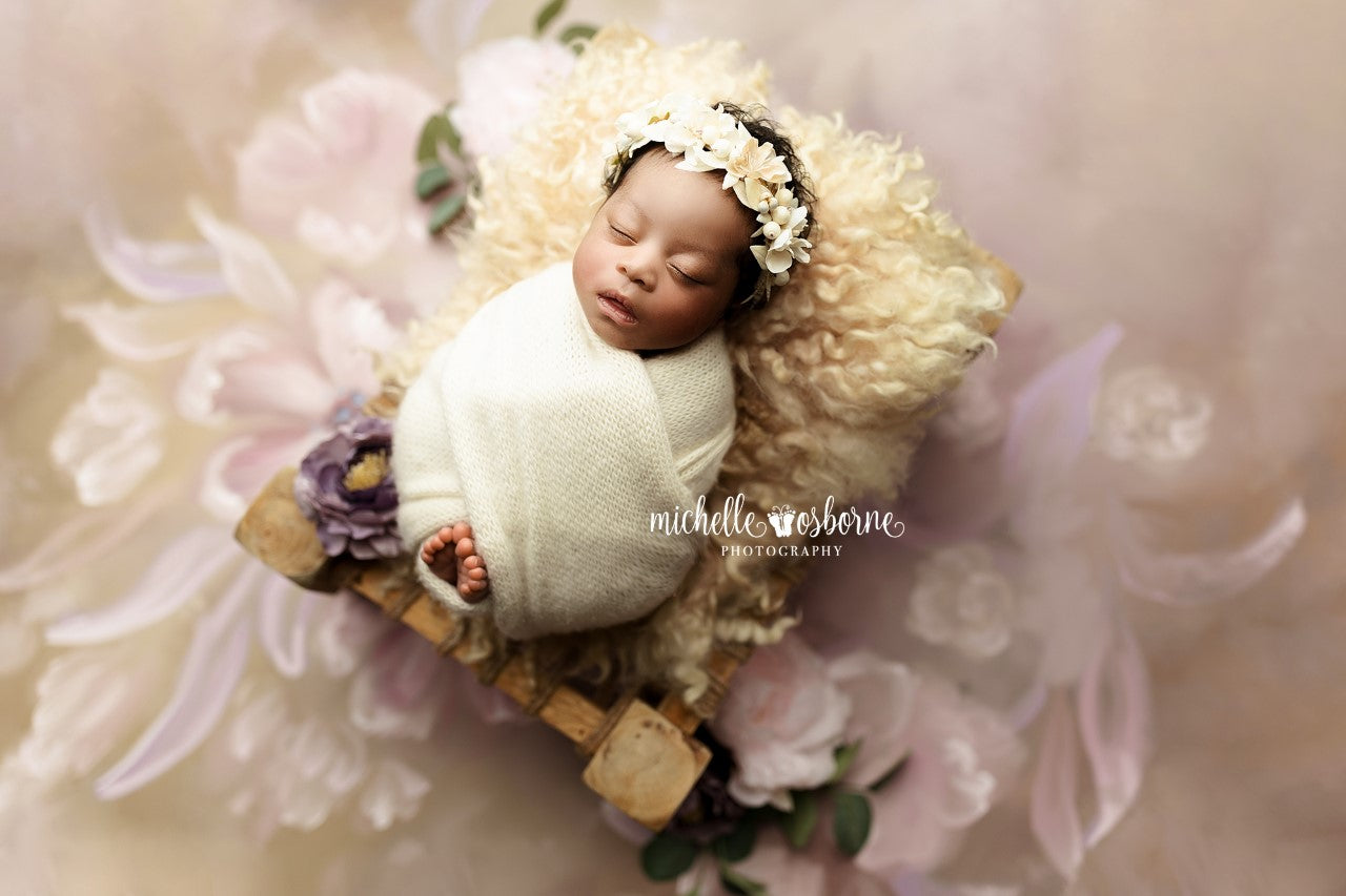 *Petite Backdrops are best used as lay-flats for newborns in props photographing overhead. They are also fantastic for wedding photographers for detail shots!*