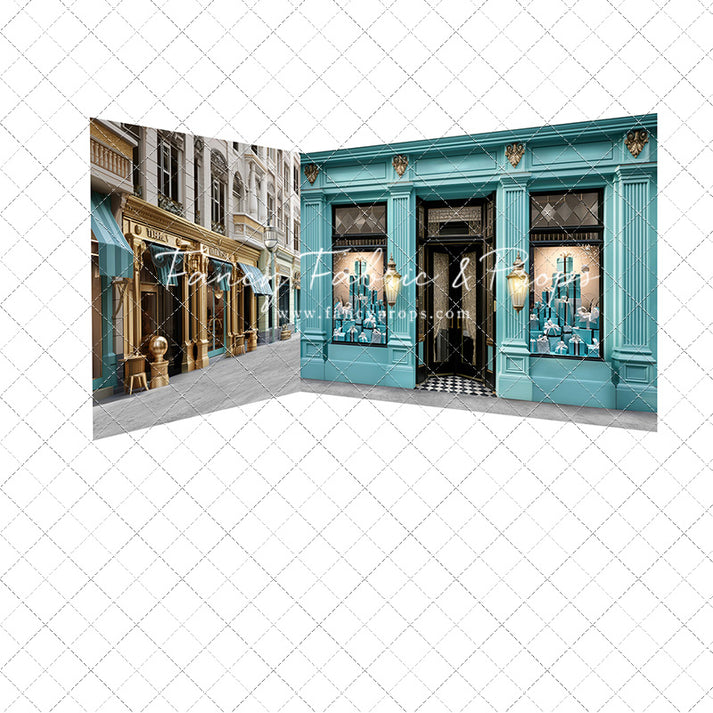 1- 8x7' - Tiffany's Boutique Street Fabric Backdrop