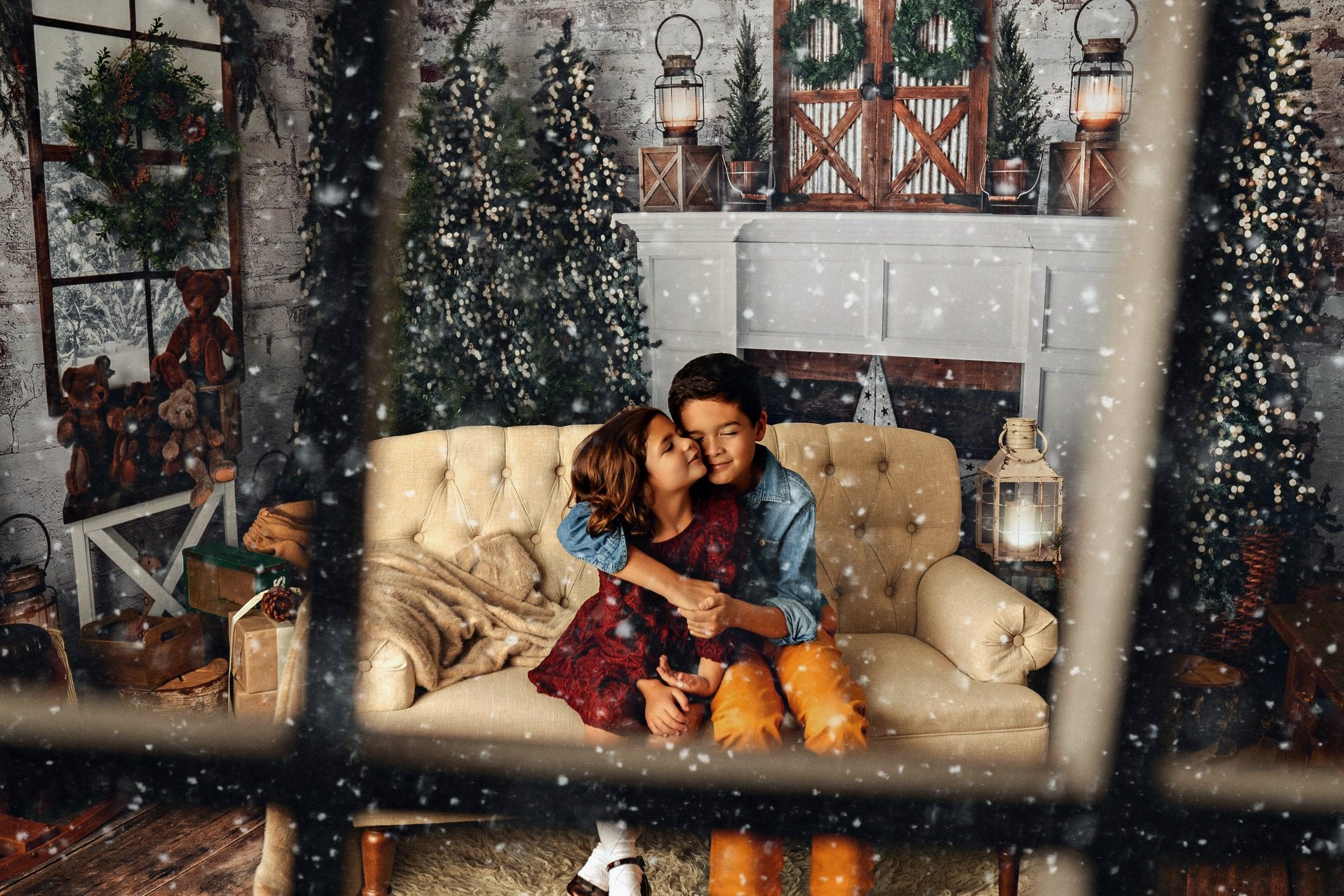 1- 10x8' - Vintage Rustic Holiday Fabric Backdrop