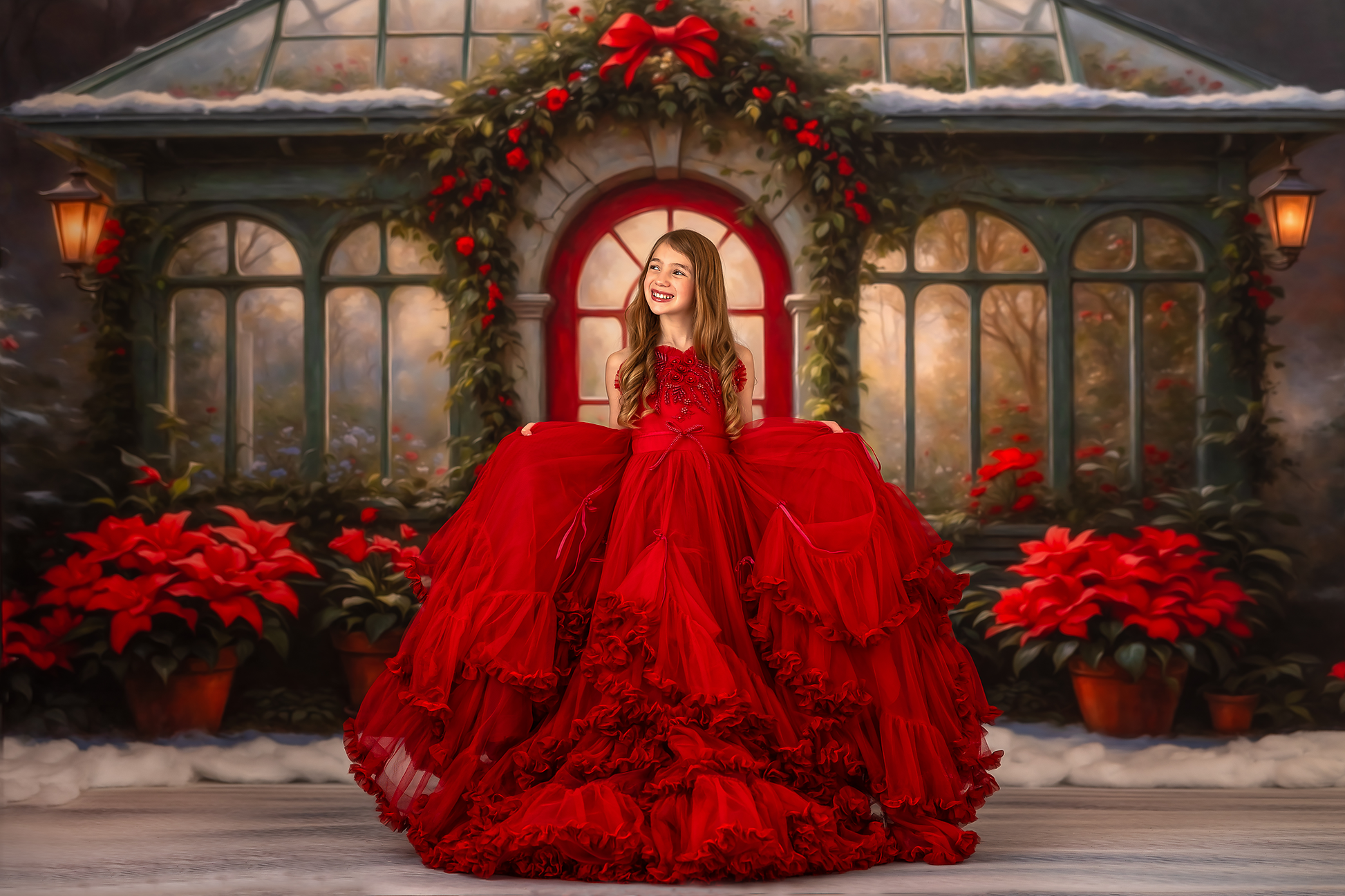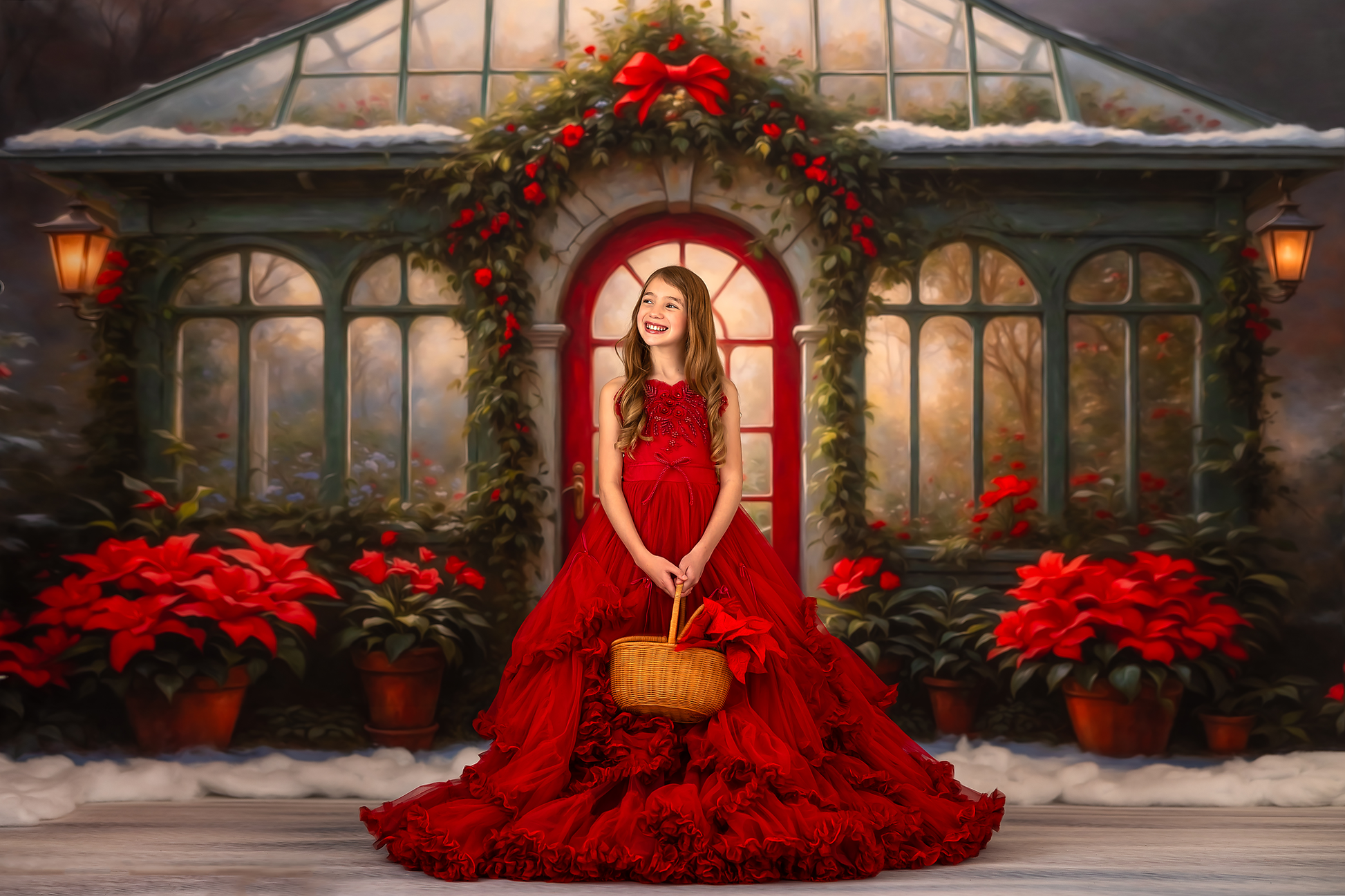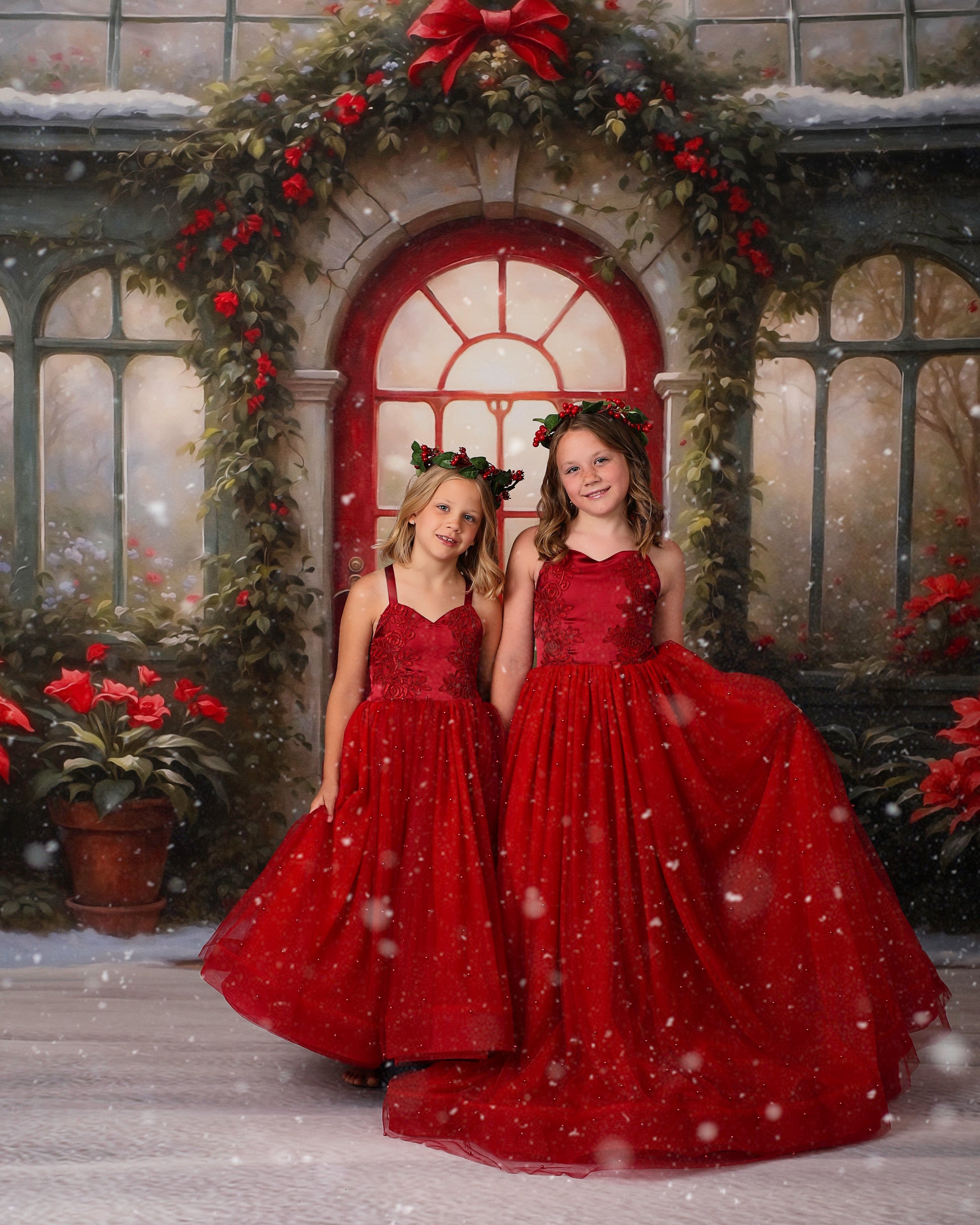 1- 12x8' - Whimsical Winter Greenhouse Fabric Backdrop